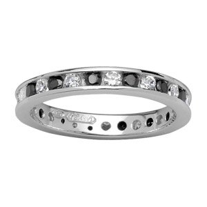 1001 Bijoux - Alliance argent rhodié et rail pierres blanches et noires - tour de doigt 50