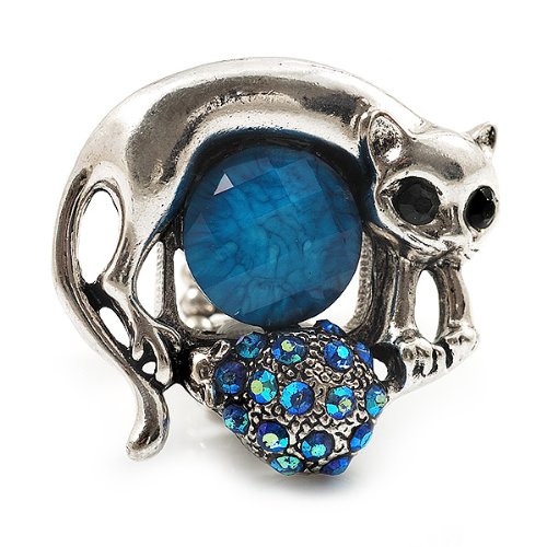 Acheter Bague Chat Vintage, OKAJewelry Bague Chat Vintage caractérise Bague Chat en Strass Cocktail Extensible disponible à plusieurs couleurs: Blanc, Gris