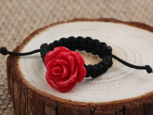 Bague tissée -Belle bague rose rouge tissée main, taille ajustable, Nouveauté, bague type brésilien