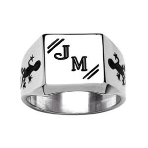 Bague Salamandre. Adeptes de bijoux ethniques en Taille 58 à 68 - Bague acier dont le tour complet est Bague Homme Acier 316 L Chevalière Carré Gravure