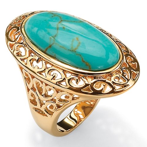 Angelina D'Andrea - Bague ovale ajourée plaqué or 18 ct turquoise de synthèse - 57. En Plaqué Or 3 microns décorée de motifs ajourés. Plaqué or 18 ct