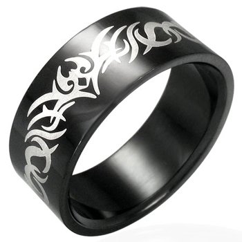 Anneau Acier Noir Tribal - Bijoux argent, Bijoux acier, Bijoux