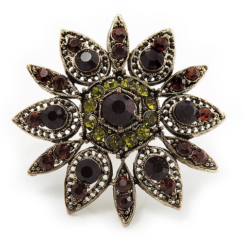 Bague cocktail Fleur multicolore grande or brûlé - diamètre 5cm (taille 8/9) réglable