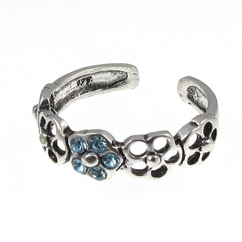 Bague de Doigt de Pied en Argent Sterling - Bleu fleur en cristal de Touch Jewellery. Bague de Doigt de Pied en Argent Sterling avec Cinq Cristaux de Touch Jewellery.