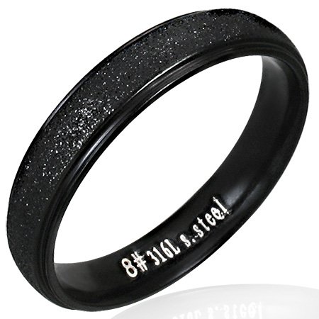 Bague en Acier Inoxydable - 4mm - Sablé Noir- taille 56