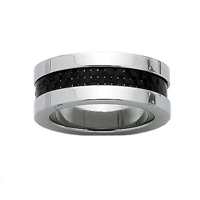Bague homme moderne anneau 8 mm carbone noir acier Bague anneau alliance bande carbone noir & blanc acier inoxydable Acier Taille: 66 Dimensions: Largeur : 8 mm.