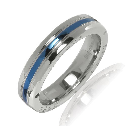 Bliss Republic - 6016006361 - Bague Mixte - Acier Bleu - Oxyde de Zirconium Blanc - T 61