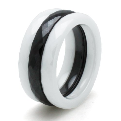 Cette superbe multiples facettes noir et céramique est un jeu de segments empilable. L'ensemble comprend 1 noir et 2 anneau en céramique blanche. Largeur individuelle: 3 mm. Largeur totale: 9mm