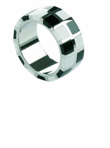 Cobra - JR654NOBL56 - Lia - Bague Femme en Acier - Email Noir - Blanc - T56