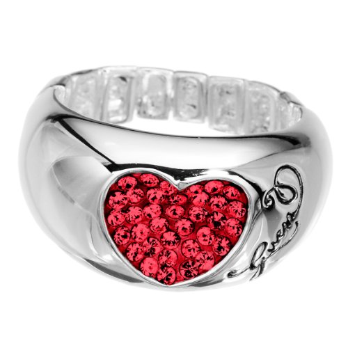 Guess - UBR12004 - Bague Femme Design -  Matérial:  Acier (rhodiné) -  Forme:  En forme de cÅur Bague Femme - Métal argenté - Extensible plus.