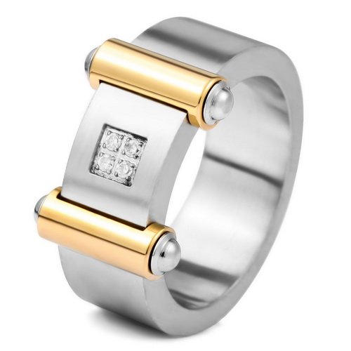 Acier inoxydable Anneau Bande Argent zircon Or Tenir Taille