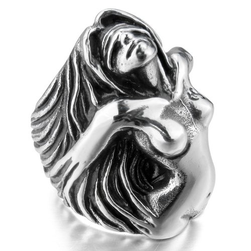 Grand 316L Acier inoxydable Anneau Argent Motard Ange Déesse Taille