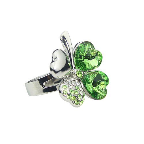 Le Premium Trèfle Collier péridot Bague SWAROVSKI FASHION PLAZA Femme Plaqué Or Blanc avec Swaroski Cristal Bague de Elements - R2012 54 - Bague