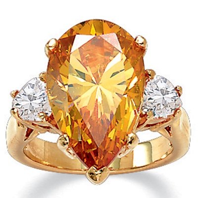 Exhibez vos doigts avec cette bague étincelante affichant une zircone cubique couleur champagne taillée en forme de goutte. Cette forme étonnante est mise en valeur par les zircones cubiques blanches en forme de coeur qui apportent des reflets glamour à l'ensemble. Poids total : 9,65 carats. Plaqué or 14 ct (585). Tailles 49 à 61. Le poids en carat annoncé peut varier de plus ou moins 5 %.