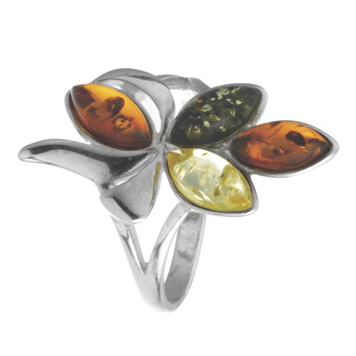 Nature d'Ambre - 311116658 - Bague Femme - Fleur - Ambre - Argent 925/1000 - T58