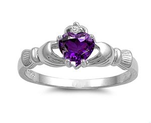 Petits Merveilles D'amour - Bague Femme Claddagh - Argent Fin 925/1000 - Amethyste Oxyde de Zirconium: Amazon.fr: Bijoux