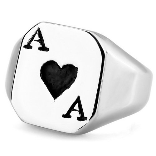 Grand Acier inoxydable Anneau Bande Argent Cœur Cartes poker A Taille