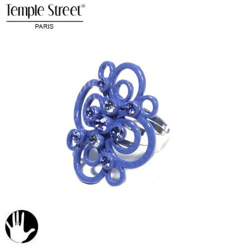 TEMPLE STREET BIJOUX FANTAISIE BAGUE REGLABLE FEMME METAL EMAILLE BLEU